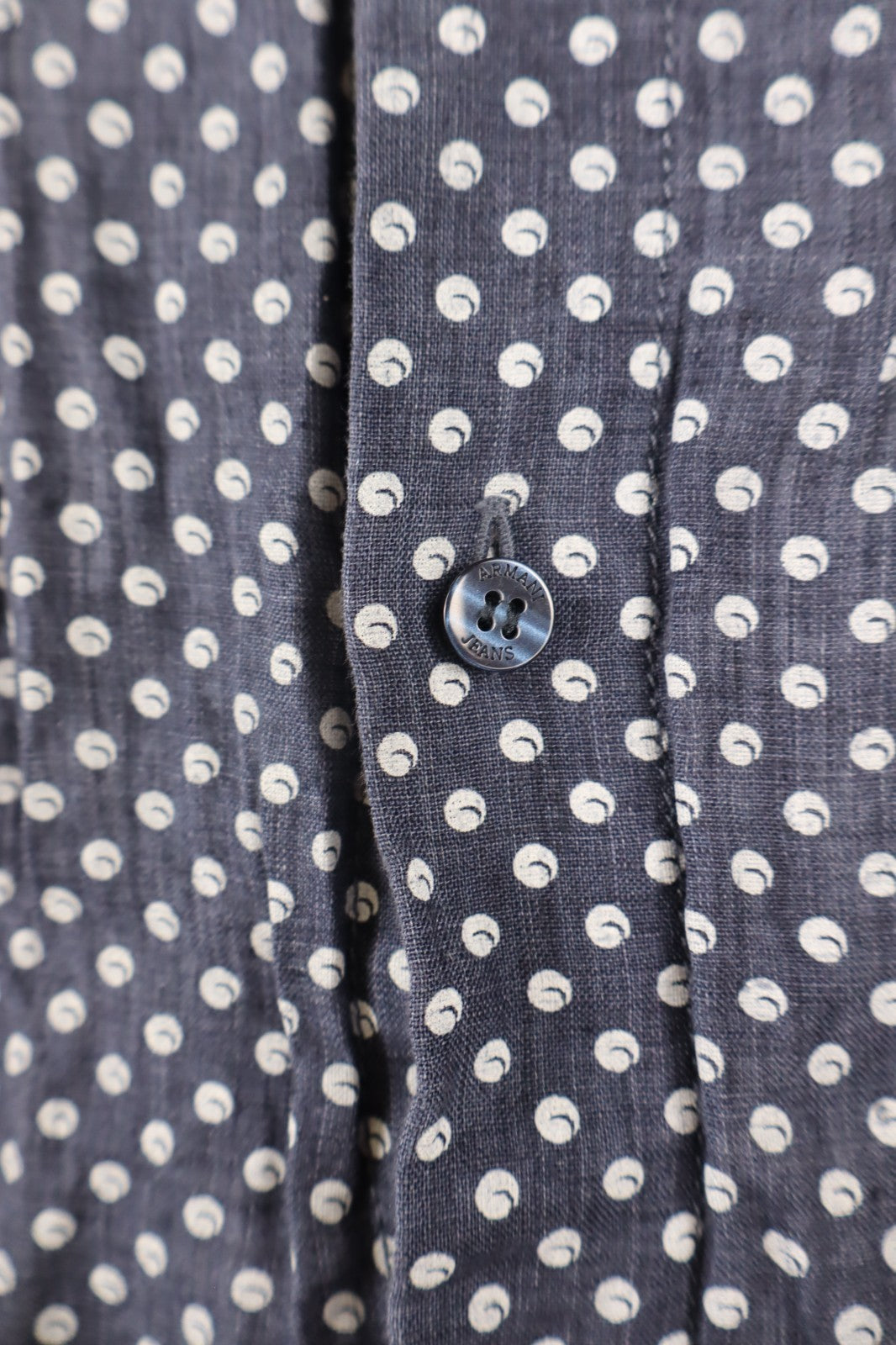 ARMANI JEANS CAMICIA UOMO LINO TG. L MAN CASUAL VINTAGE LINEN SHIRT POIS TASCHE