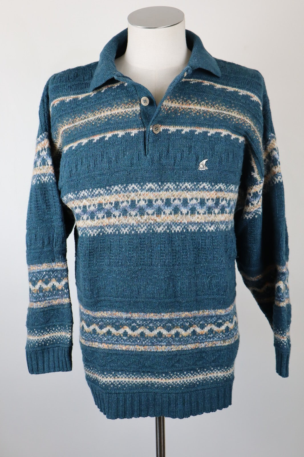 NORTH POLE MAGLIONE CON COLLETTO LANA VINTAGE UOMO Tg. L MAN WOOL SWEATER CASUAL